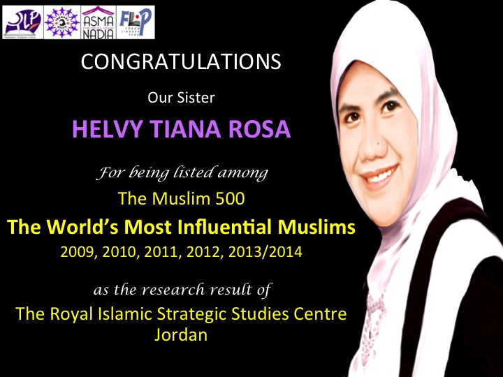 Awal tahun 2014 lalu The Royal Islamic Strategic Studies Centre, Jordan mengumumkan daftar 500 tokoh muslim yang masuk dalam daftar The World’s Most Influential Muslims (Muslim Paling Berpengaruh di Dunia) tahun 2013/2014 . Alhamdulillah ada nama Helvy Tiana Rosa, untuk bidang Seni dan Budaya. Tahun ini lebih dari 20 tokoh Indonesia yang masuk dalam daftar tersebut. Sebelumnya lembaga yang sama memilih Helvy sebagai salah satu dari 500 Tokoh Muslim Paling Berpengaruh di Dunia untuk tahun 2009, 2010, 2011, dan 2012.
