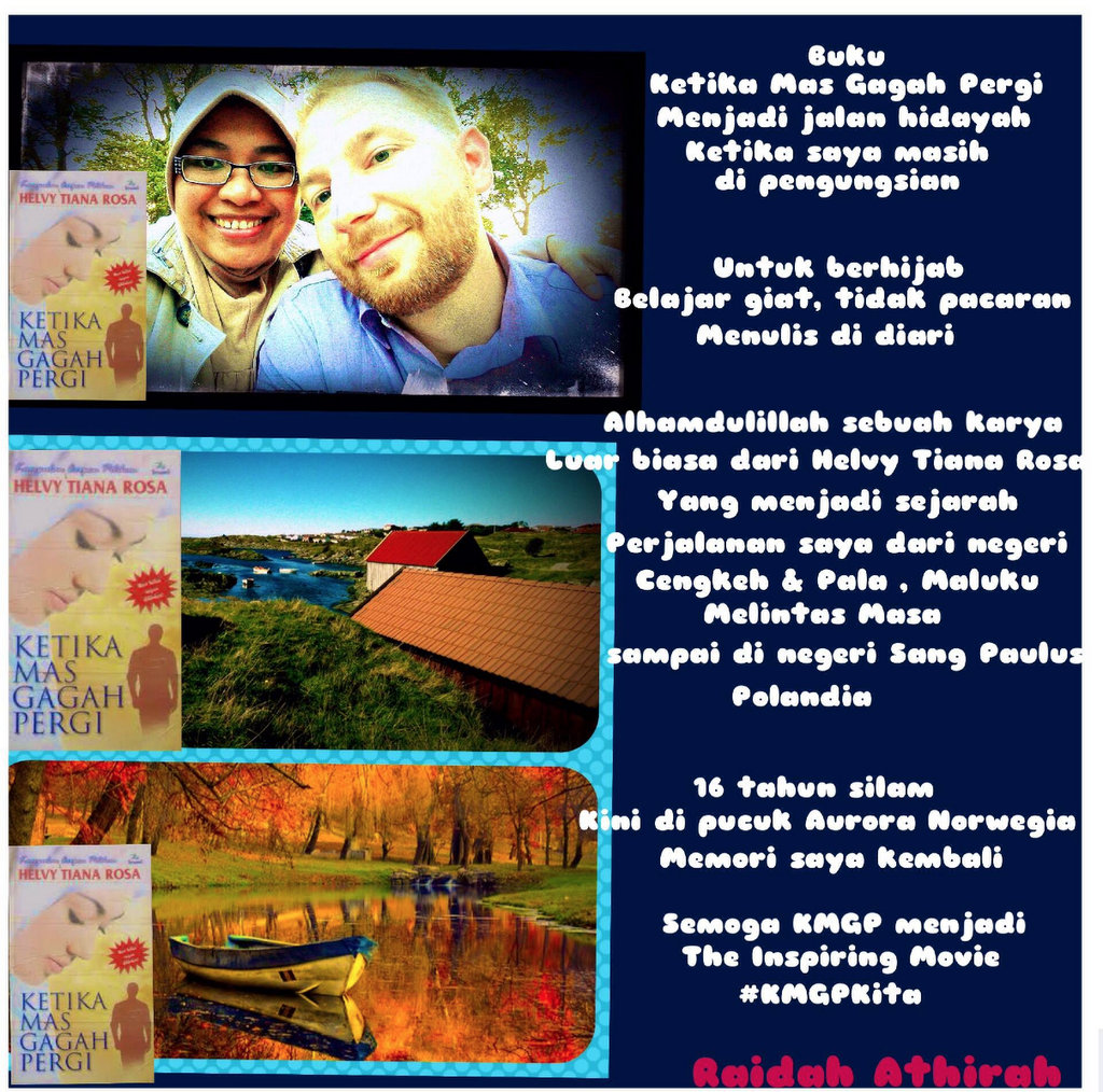 Di bawah kaki gunung Gamalama dengan rumah pengungsi tanpa pintu ,aku berhijrah. Sebuah hijrah dari rasa putus asa menuju nilai keyakinan yang kuat bahwa tak selamanya hidup ini di dera panas, akan tiba masa hujan penuh rahmat. Dan masa itu pun tiba, di tanah Viking Norwegia bersama mas Gagahku, imam yang Allah karuniakan dari negeri Sang Paulus untukku menjejak bersama. Terimah kasih ibu Helvy Tiana Rosa atas karya luar biasa yang penuh inspirasi: Ketika Mas Gagah Pergi. Aku berharap karya luar biasa ini kembali menginspirasi generasi muda saat ini sebagaimana aku menjadi saksi sebuah perubahan setelah membaca aksara-aksara luar biasa dalam buku Ketika Mas Gagah Pergi.