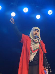 Setelah ini semua, apa lagi yang bisa diucapkan oleh kamus bahasa manusia Genosida di luar nalar di luar imaji, tak sanggup diucap puisi, diragukan bahkan oleh fiksi, Kata-kata di kamus berlumuran duka, mengalirkan nanah, menggelepar, bergelimpangan, dan meledak di keheningan kepala kita. Sisanya diculik, disandera penjajah narasi abad ini.